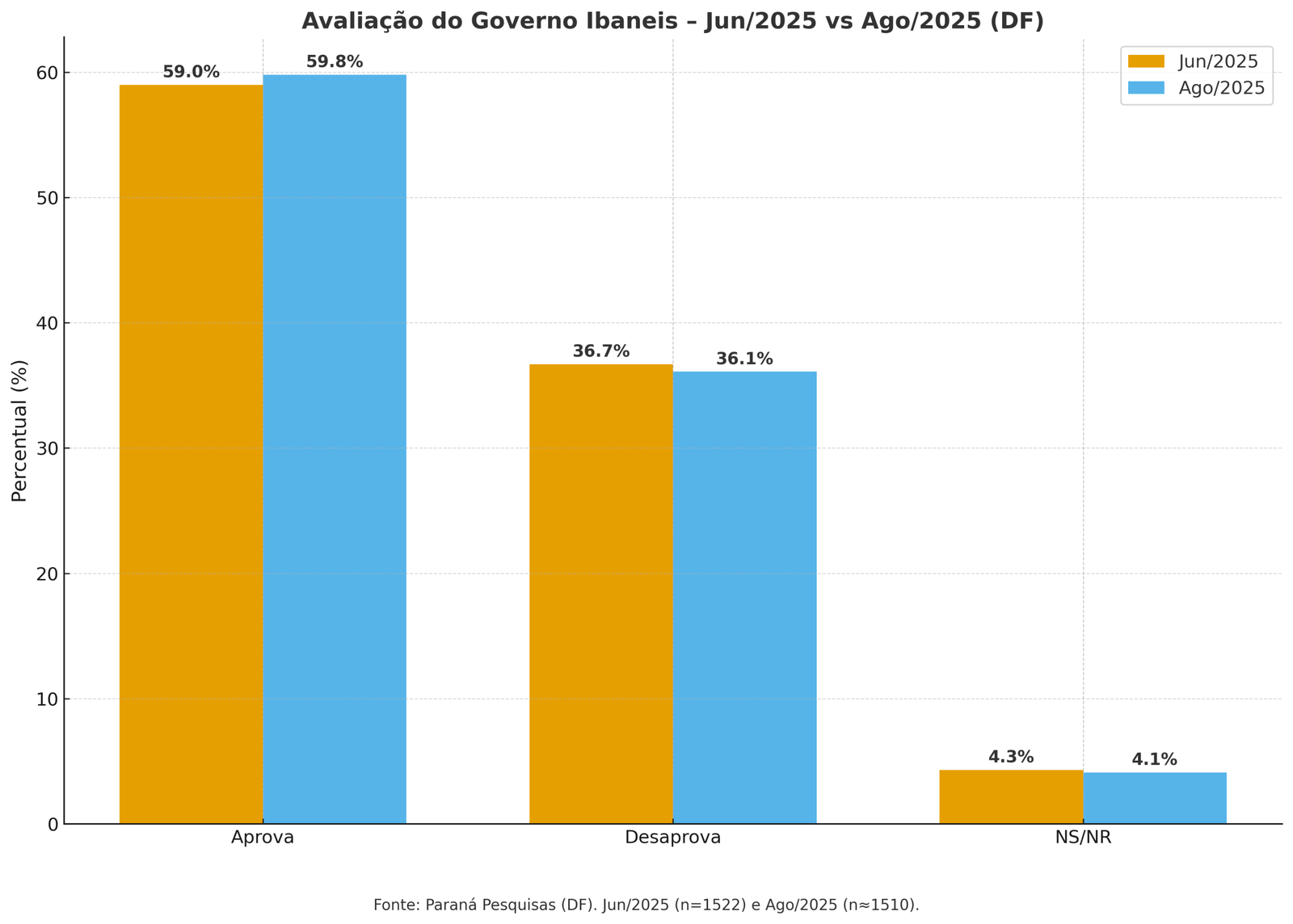 Quando comparado com a última pesquisa, da Paraná Pesquisa, de junho, se verifica a estabilidade de avaliação do eleitorado do Distrito Federal, com variações de menos de um ponto percentual, para mais, ou menos, na aprovação ou desaprovação.