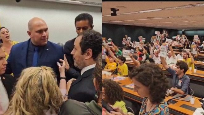 Após questionar evento pró-Hamas, o deputado federal Abílio Brunini foi expulso e escoltado pela Polícia Legislativa da Câmara. Leia na Gazeta do Povo. Fonte: Gazeta do Povos