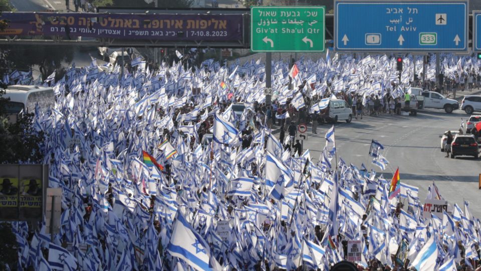 A manifestação ocorreu em diferentes partes de Israel dias depois que o Parlamento aprovou uma lei fundamental que limita o poder da Suprema Corte do país Fonte: Gazeta do Povo