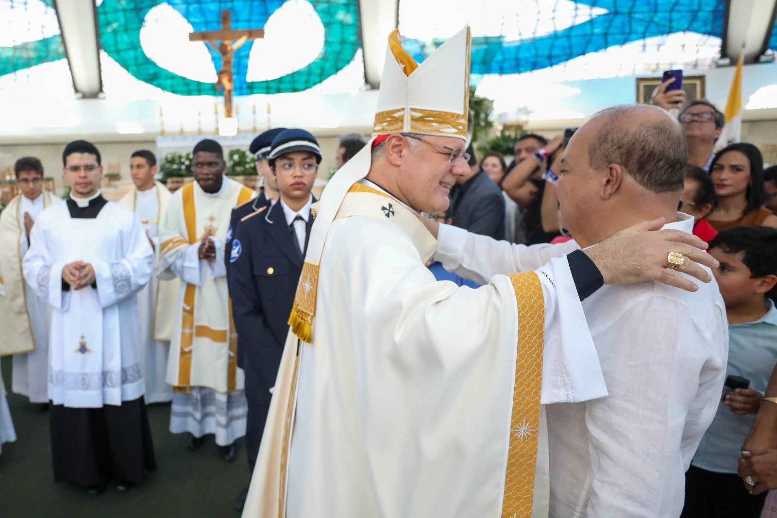 O governador Ibaneis Rocha e a primeira-dama Mayara Noronha Rocha prestigiaram a missa de aniversário da capital e lamentaram a perda do pontífice, com quem tiveram a oportunidade de conhecer e encontrar em duas oportunidades em visita ao Vaticano, em Roma, na Itália.