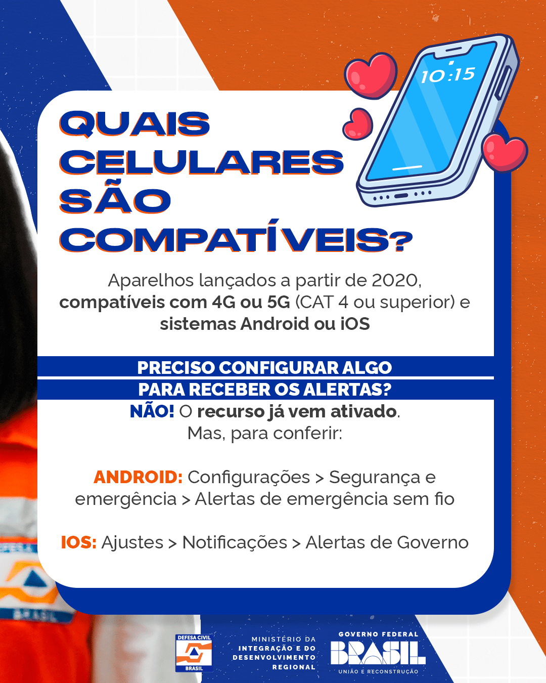 A iniciativa complementa os canais já existentes, como o envio de SMS, alertas por WhatsApp, Telegram e TV por assinatura. “O DCA não substitui os demais canais de alerta já existentes, mas os complementa. Nós da Defesa Civil do DF estamos aptos a operacionalizar o novo sistema”, explica o subsecretário do Sistema de Defesa Civil, Sandro Gomes.