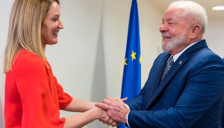 Após encontro bilateral com Lula na Bélgica, Roberta Metsola revelou que acordo com Mercosul pode ser benéfico “com as devidas salvaguardas ambientais” Fonte: Gazeta do Povos